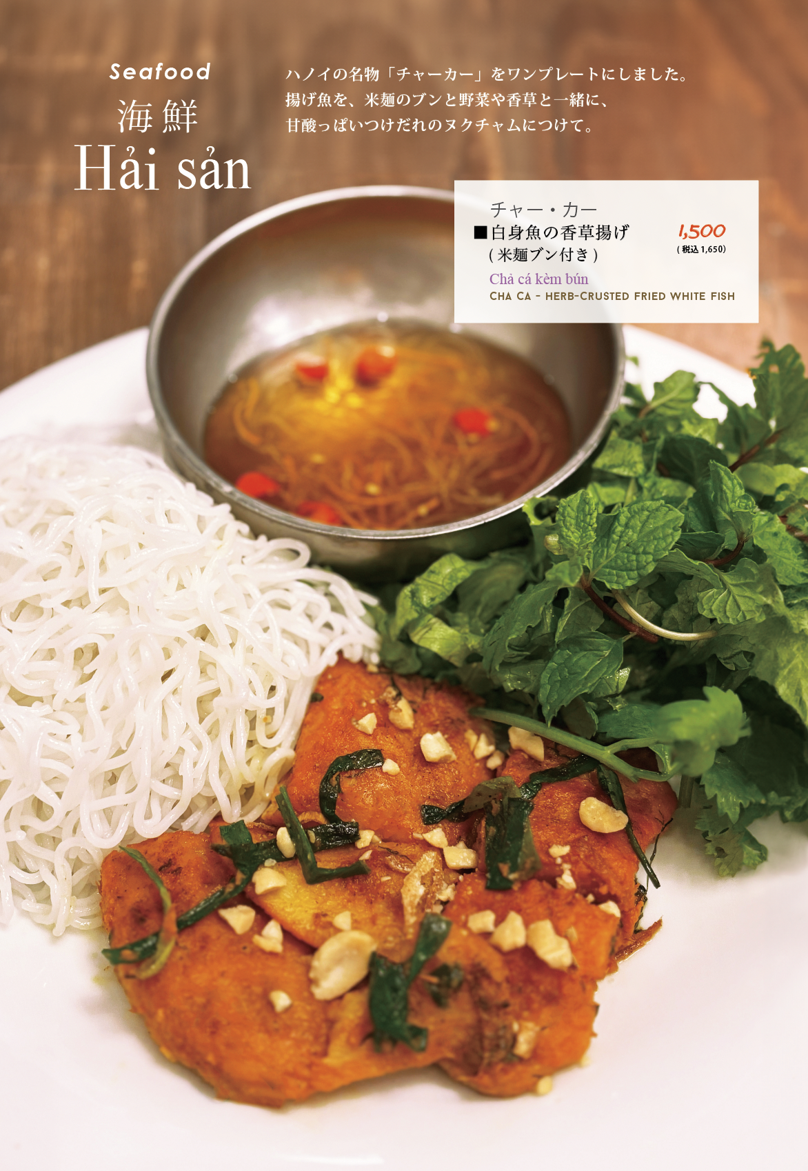〇白身魚の香草揚げ 米麺ブン付き ↑写真